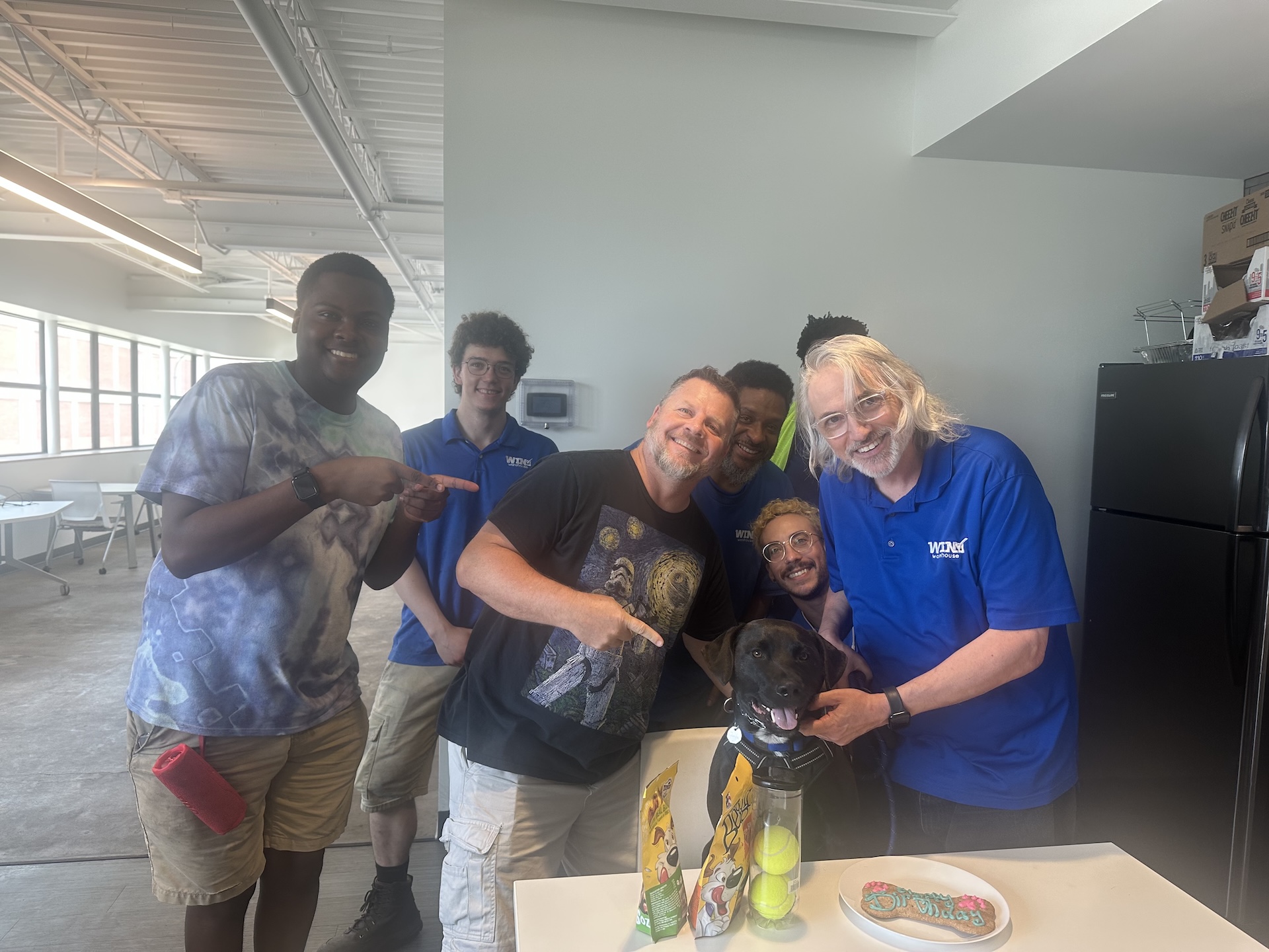 It’s two years later, and Gibby is both a cherished companion and a familiar part of life at WIN Warehouse. His easygoing nature and playful spirit brighten the workday and bring joy to everyone he meets.